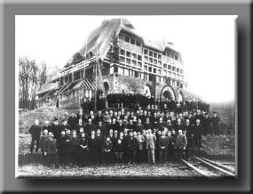 "Haus Jungfried" beim Richtfest. Vorne im Bild, im hellen Anzug, Paul Multhaupt